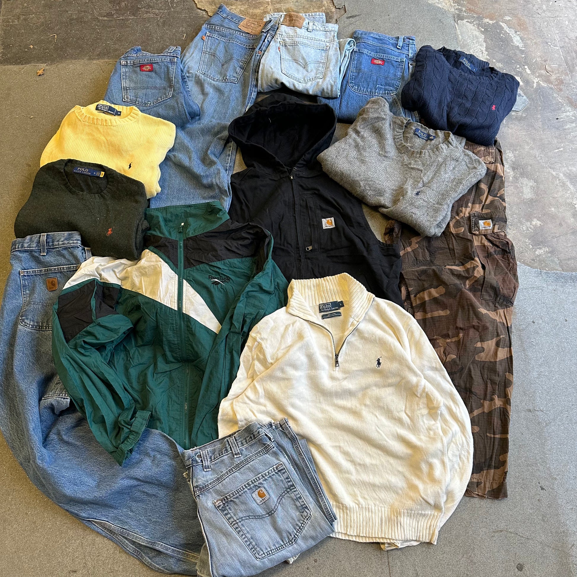 - Brands to expect: Ralph Lauren, Carhartt, Dickies, LevisĀ